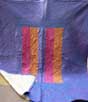 This work is carried out on antique and contemporary textiles from different parts of India like sarees, dhotis, dupattas, shawls. An array of colours including rich and pastel shades, prints and textures are used for quilting. Textiles used are linen, chikan work, silk, tafetta, satin, mushroo (atlas), velvet, cotton, voil (malmal), wool.